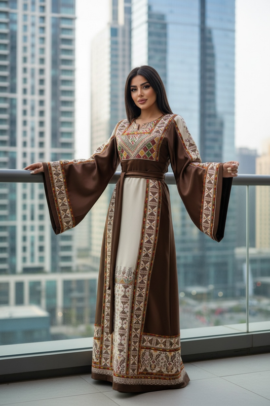 Brown Embroidered Palestinian Fellahi Thobe