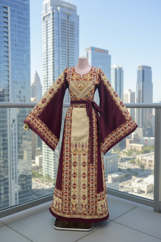 Maroon Embroidered Palestinian Fellahi Thobe