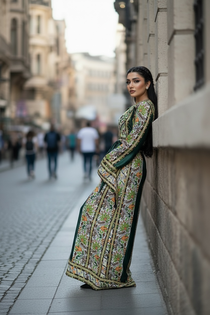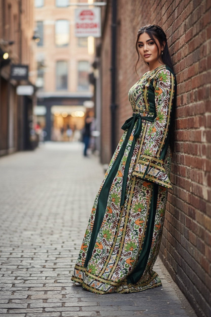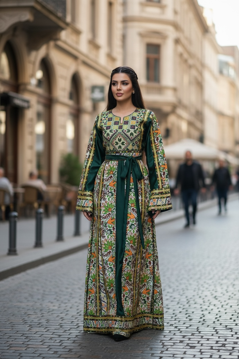 - Beautiful dress / Thoub with beautiful Palestinian cross-stitch /embroidery details on front and back