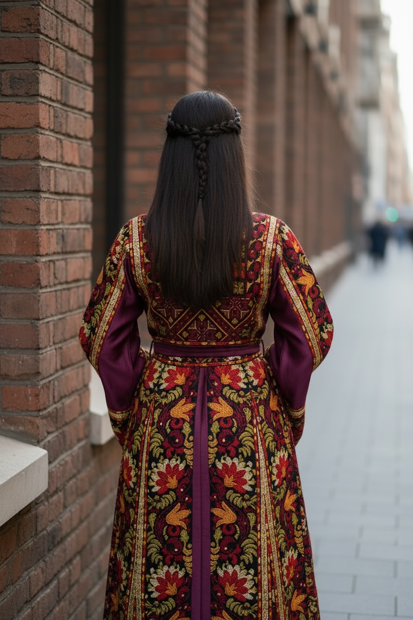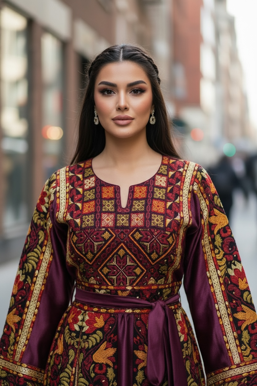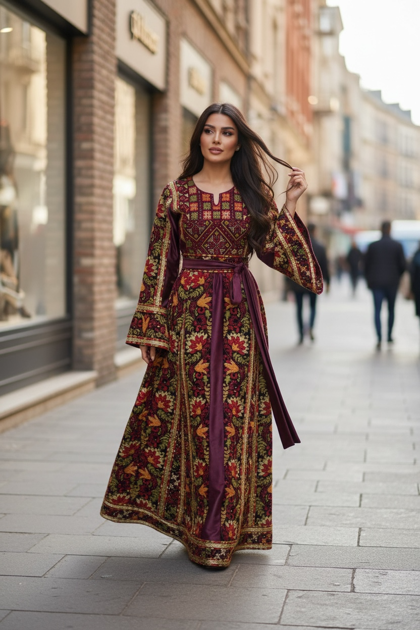 - Beautiful dress / Thoub with beautiful Palestinian cross-stitch /embroidery details on front and back